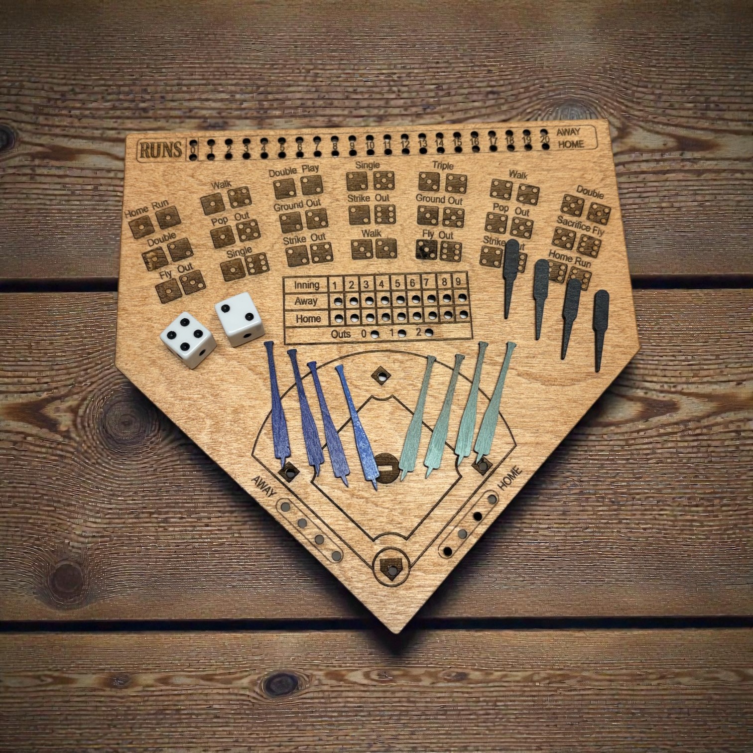 Laser-Cut & Engraved Wooden Dice Baseball Game