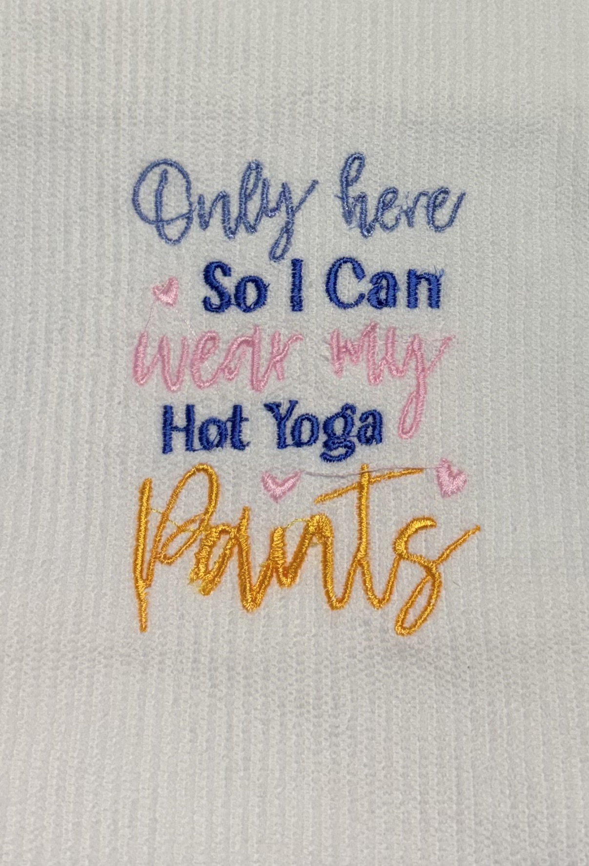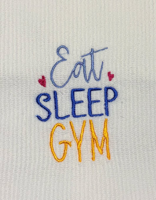 Once embroidered, each towel is trimmed, inspected, and neatly finished to ensure crisp lettering, secure stitching, and a polished look. The result is a durable, beautifully crafted workout towel that combines softness, function, and a pop of personality in every stitch.