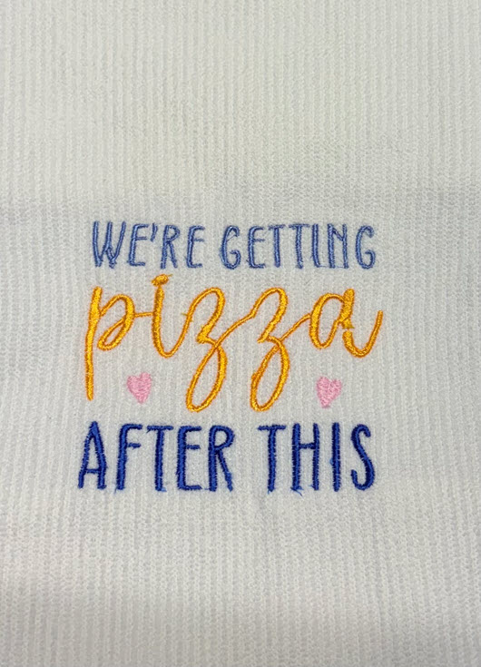 Every design is carefully digitized and machine embroidered using vibrant, colorfast threads that are made to last. The embroidery process stitches each phrase directly into the fabric — not printed or heat-pressed — giving it a textured, professional finish that won’t peel or fade with washing.